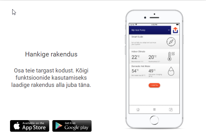 NIBE UplinkTM on mugav nutirakendus, millega saate NIBE maa- või õhk-vesisoojuspumpa juhtida ka distantsilt. Uutel NIBE S-seeria soojuspumpadel on kasutusele võetud uus rakendus myUplink. Soojuspumpa saab juhtida eemalt nii arvuti kui ka nutiseadmega, käsitsi või automaatselt, vastavalt Teie elustiilile. NIBE Uplink/NIBE myUplink reguleerib automaatselt sisekliimat ja kasutab elektrit kõige odavamal hinnaperioodil, vastavalt elektribörsi tunnihinnale. Soojuspump töötab maksimaalset just ajal kui elektri hind on kõige madalam. Koostöös rakendusega Smart Price Adaption, millega soojuspump saab infot järgneva 24 tunni elektribörsi hindadest saab NIBE Uplink abil küttekulusid vähendada täiendavalt 5-10% aastas.