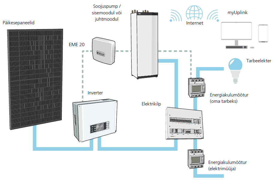 NIBE soojuspumba ja päikesepaneelide süsteemi skeem